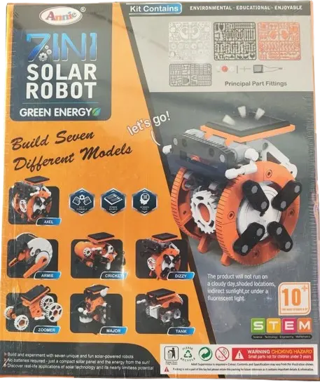 Introduce your child to the fascinating world of solar energy and robotics with this 7-in-1 Solar Robot Kit. This eco-friendly STEM toy allows kids to build seven different working robot models using the power of the sun — no batteries required!
