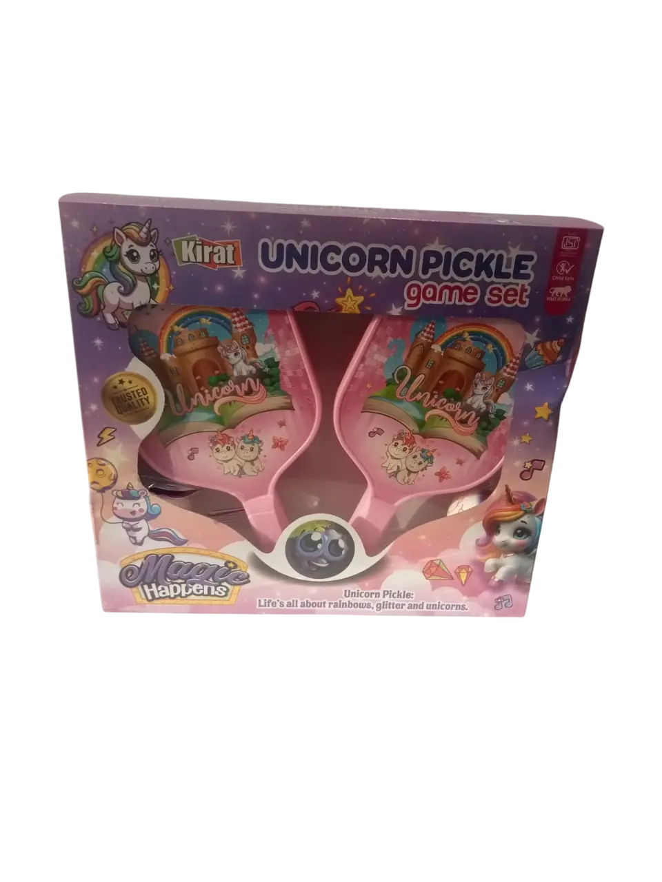 The Kirat Unicorn Pickle Game Set is more than just a toy; it is an invitation to a world of magical movement and active fun. Specially designed for young children, this set combines the high-energy excitement of racket sports with a whimsical, trend-driven "Magic Happens" unicorn theme. Whether your child is playing in the backyard, at a local park, or even in a spacious indoor area, this set provides a safe and enchanting way to stay active.